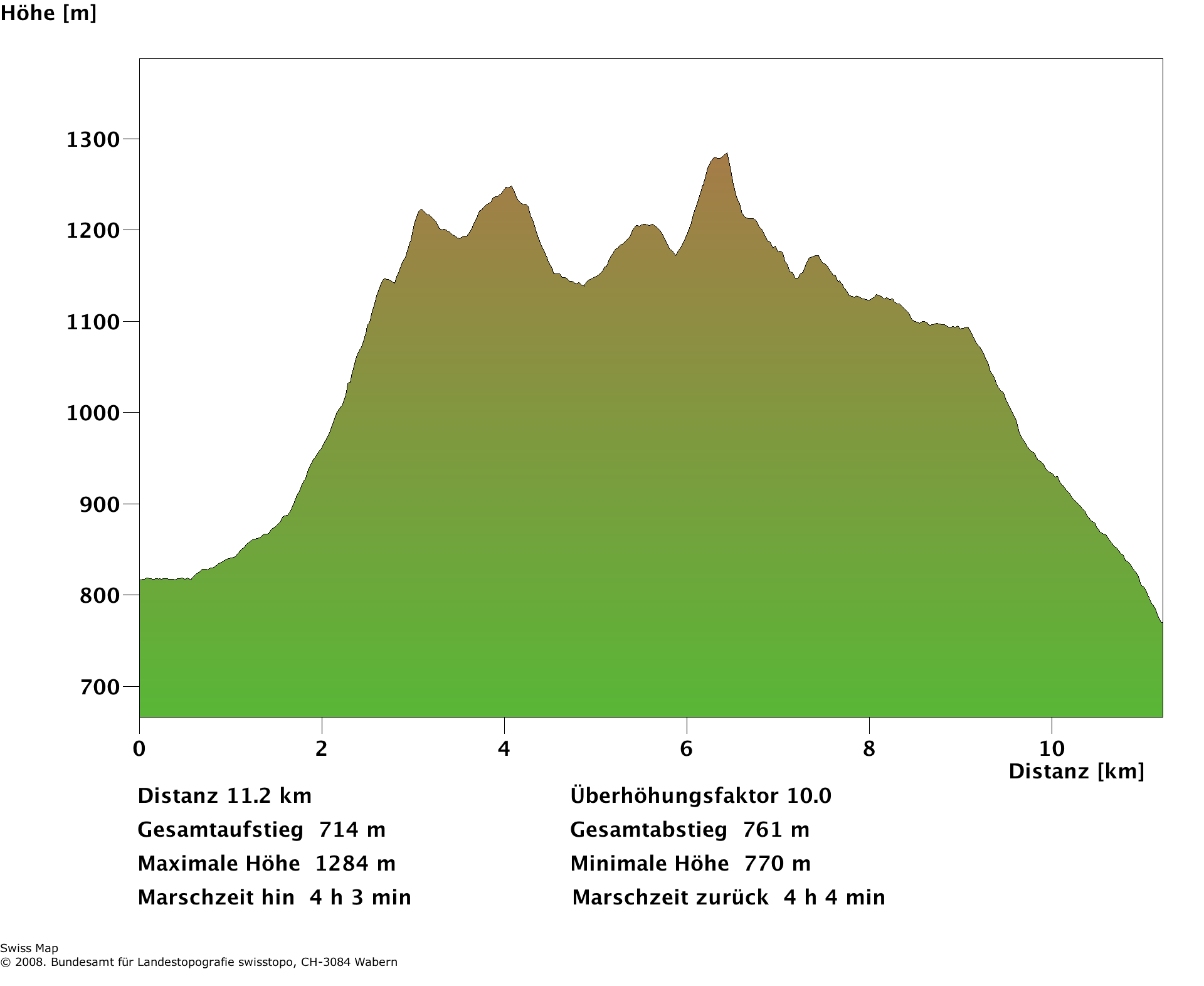 Der Aufstieg bis unter den Habrütispitz braucht etwa 90min, die folgende Traverse zum Schnebelhorn eine Stunde. Für den Abstieg nach Libingen sollten nochmals 90min eingeplant werden.