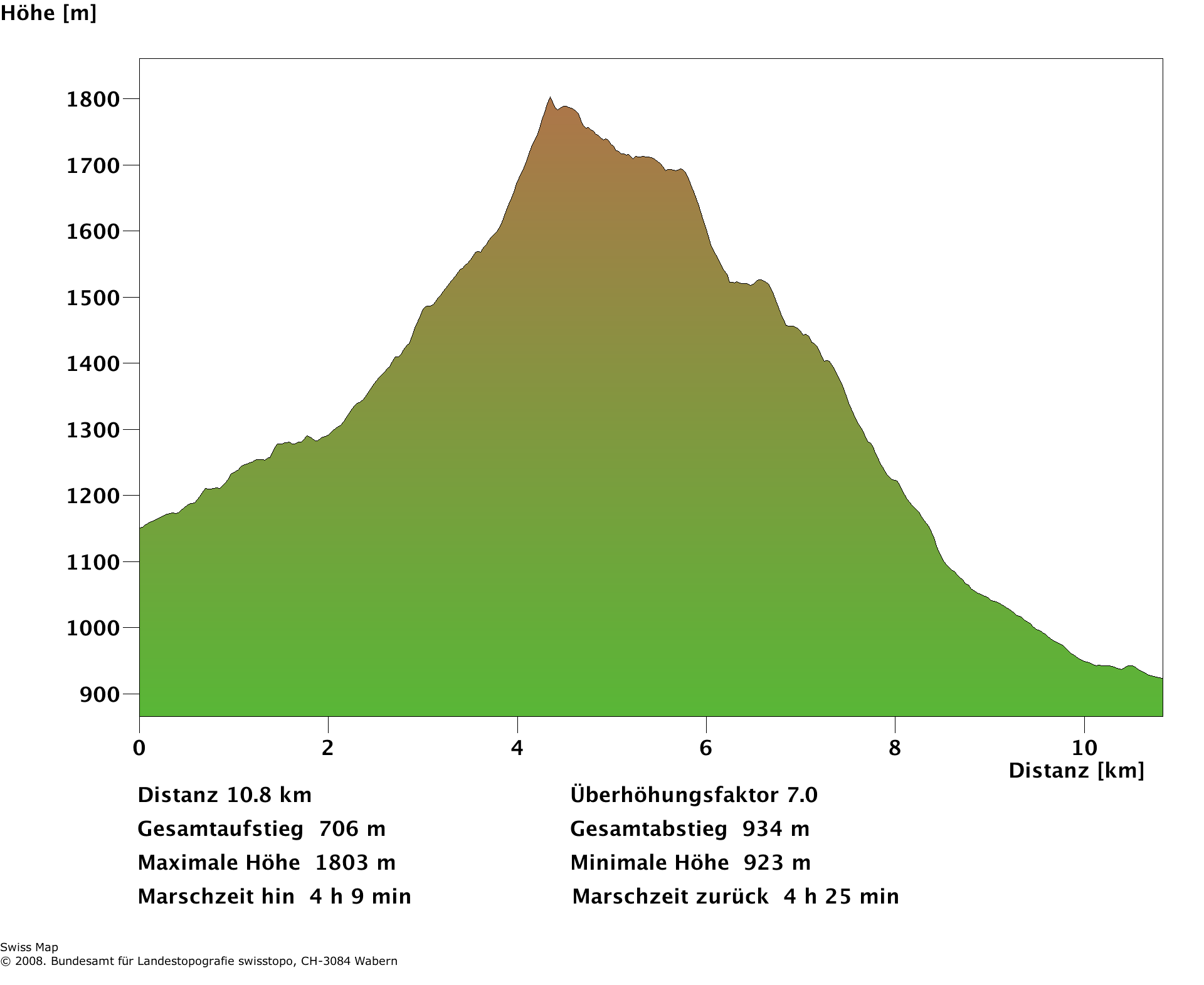 Sörenberg (1160m) - Alpweid - Mittlist Gfäll - Dählebode (1805m) - auf dem Kamm Richtung Bleikenchopf - vor dem Pt. 1705 rechts runter nach Rohr (1524m) - nordöstlich um den Bleikenchopf herum - Oberflüeli - Golfplatz.