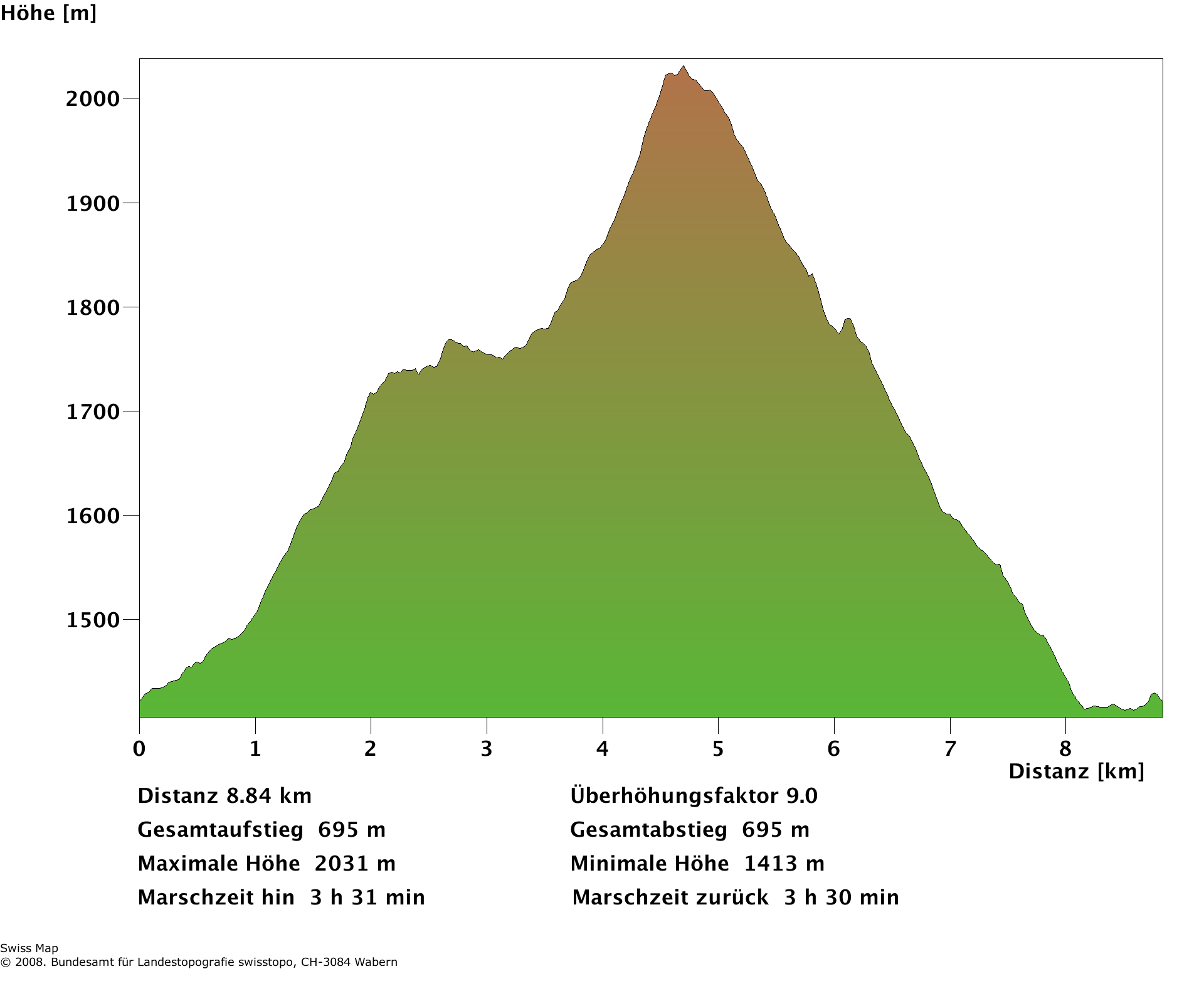 Optional Abstecher auf den Gipfel des Wiriehorns (2304m). 340m Auf- und Abstieg zusätzlich, ca. 1.5 Stunden mehr Laufzeit. Rundtour mit Gipfelabstecher wäre also 5h Marschzeit. Auf der Nordschulter bei knapp 2200 M.ü.M. hat's auch schon einen lohnenden Aussichtspunkt.